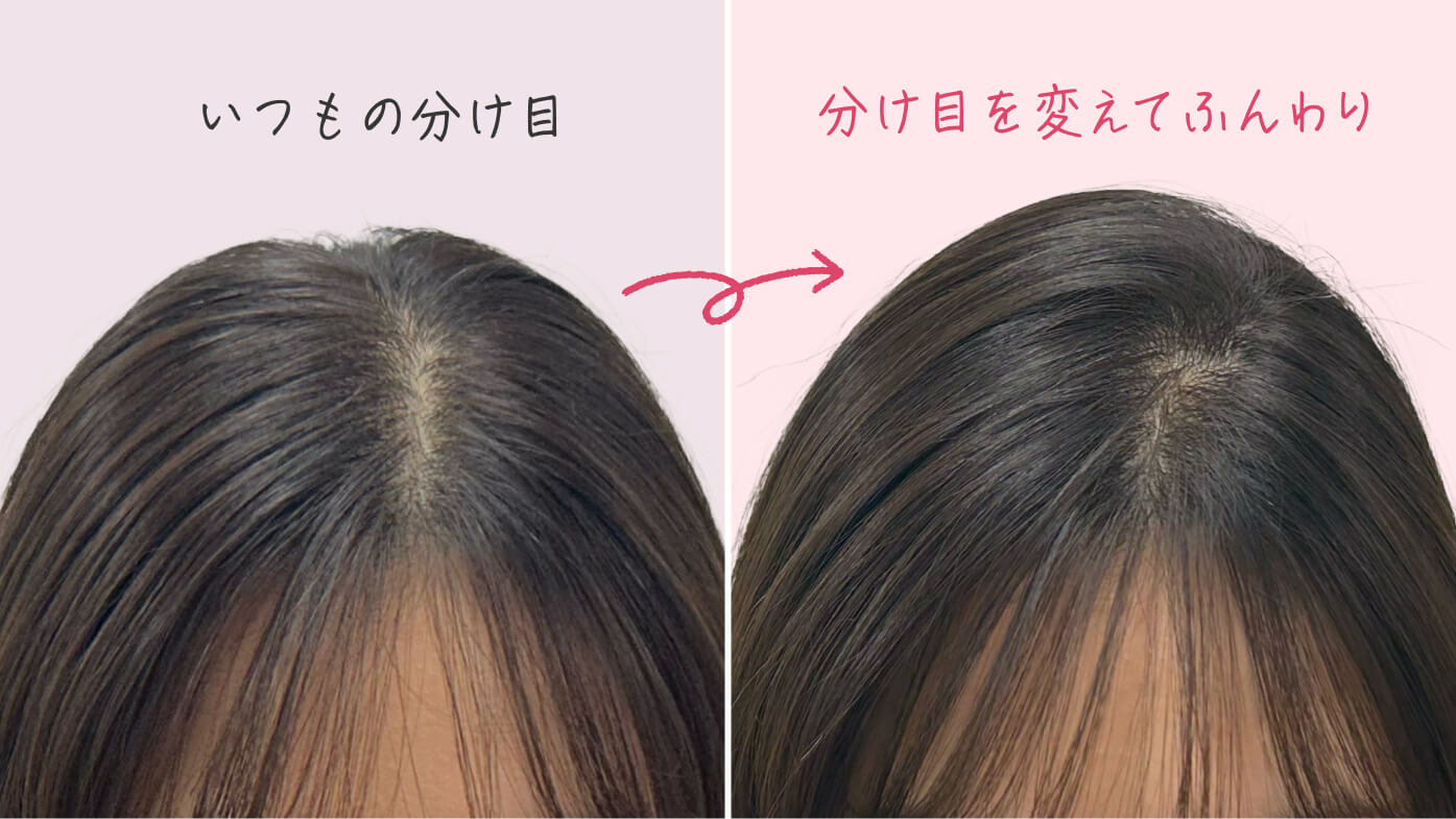 毎日同じ分け目にしていると、根元はその形に慣れてしまい、ぺたんとしやすくなります。そんなときは、分け目に少し変化を。